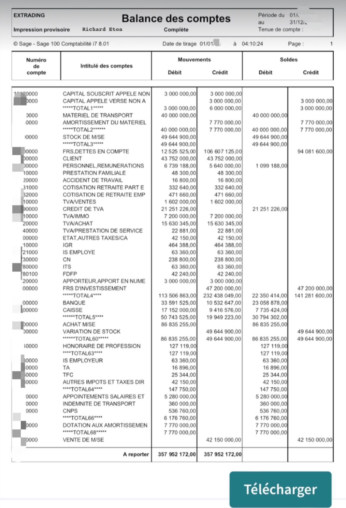 • Contrôle des soldes négatifs : Assurez-vous qu’aucun compte de trésorerie ne présente un solde incohérent.