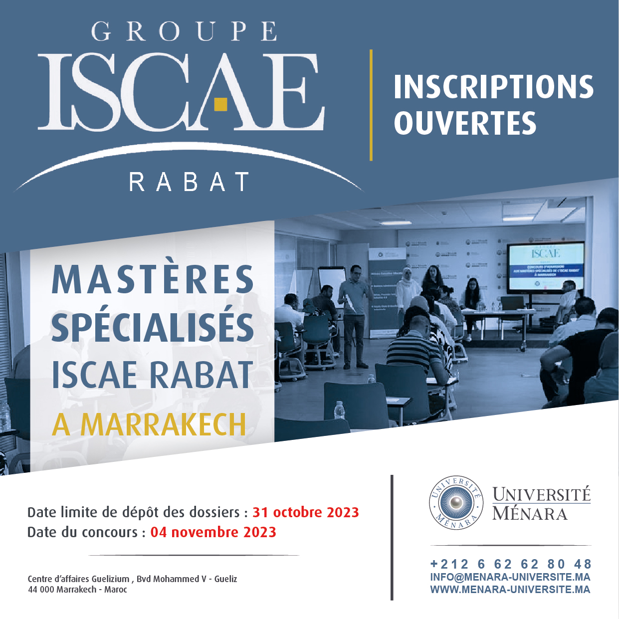 Inscrivez-vous à nos Mastères d’excellence délivrés par ISCAE en partenariat exclusif avec Ménara Université.