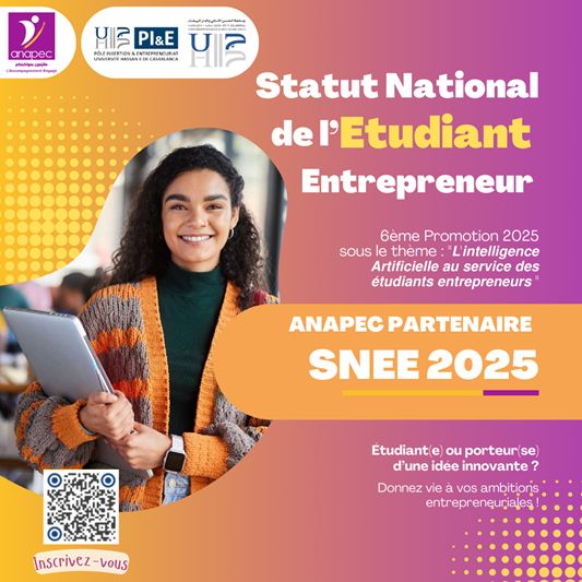 En partenariat avec le Pôle Insertion & Entrepreneuriat de l’Université Hassan II de Casablanca, l’ANAPEC soutient le développement de l’esprit entrepreneurial chez les jeunes à travers le lancement du SNEE, un dispositif dédié aux étudiants souhaitant transformer leurs idées en projets concrets.