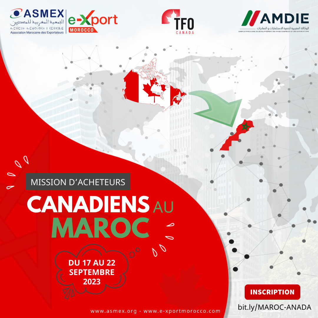 l’ASMEX et TFO Canada organisent avec AMDIE une mission d’acheteurs canadiens au Maroc du 17 au 22 septembre 2023.