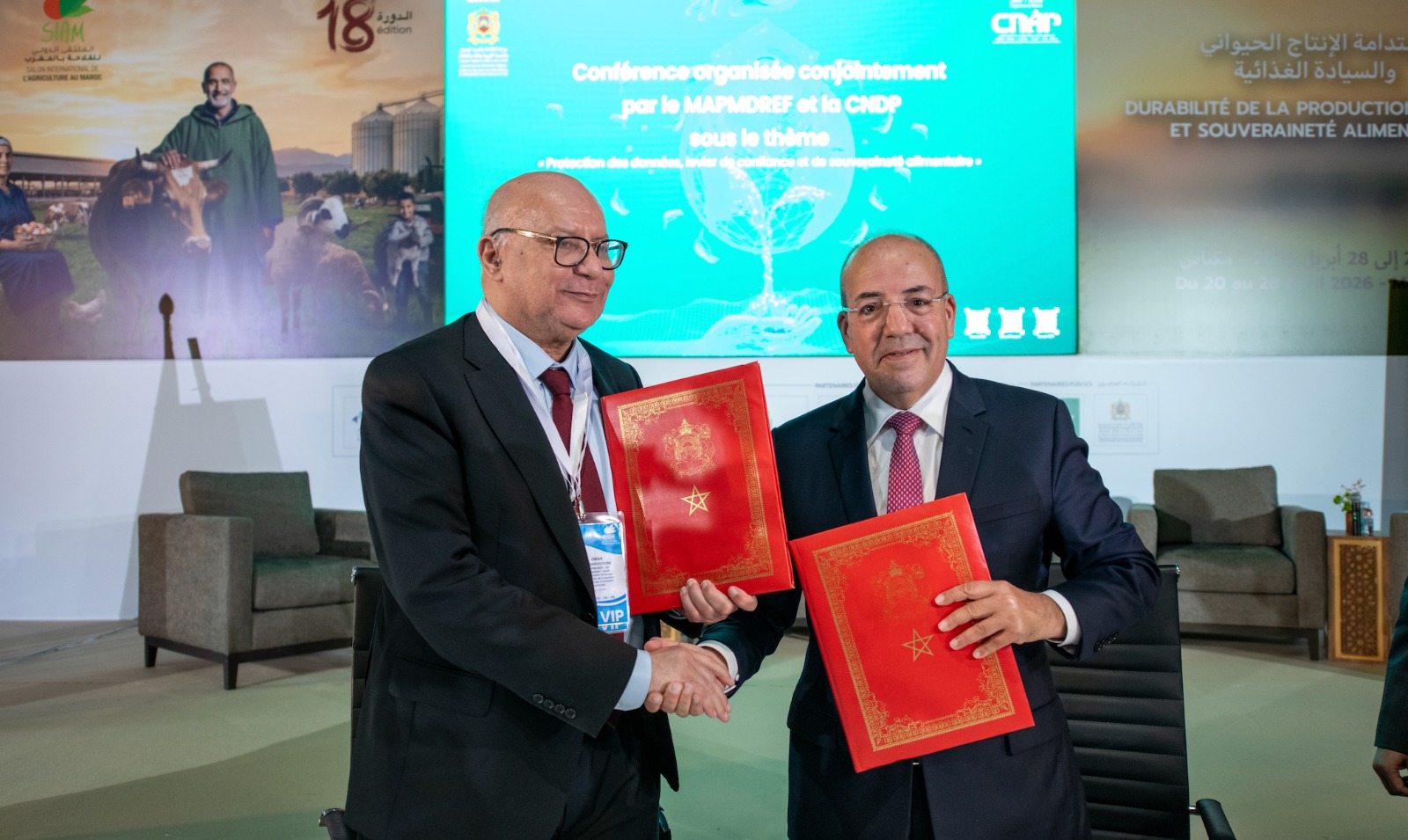 Le Ministère de l’Agriculture, de la Pêche maritime, du Développement Rural et des Eaux et Forêts (MAPMDREF) et La Commission Nationale de contrôle de la protection des Données à caractère Personnel (CNDP) ont signé, ce mercredi 22 avril 2026, en marge du SIAM, à Meknès, une convention marquant l’adhésion du ministère au programme « DATA-TIKA ».